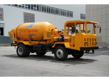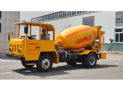 5.攪拌罐體運輸時水平安置在機架上,罐體尾端配有液壓升降裝置,可根據現場需要調整出料高度;在手動出料手輪蓋板間裝有自動導向的滾珠,可實現輕松開關罐口蓋板。